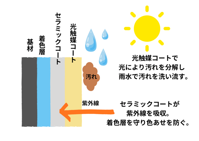セラミックコートと光触媒コートでコーティングした外壁なんだよ。